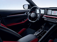 Отделка интерьера и сидений экокожей с замшевыми вставками чёрного и красного цвета